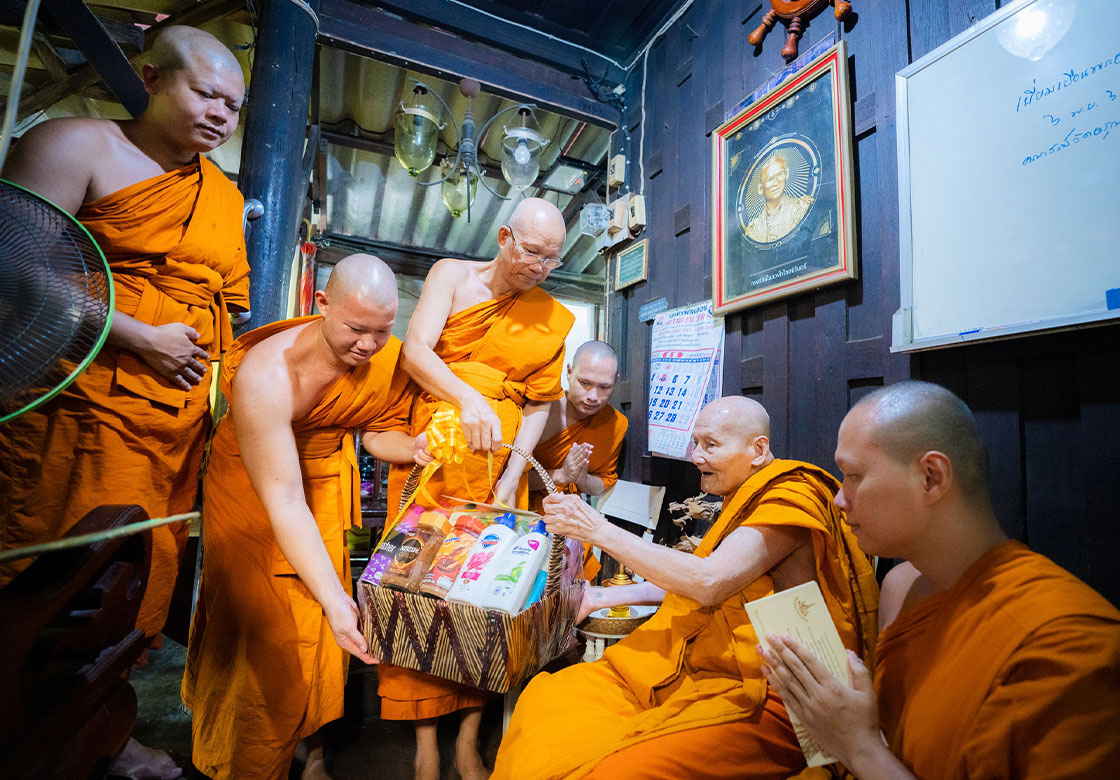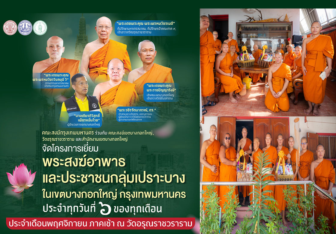 คณะสงฆ์กรุงเทพมหานคร คณะสงฆ์เขตบางกอกใหญ่ คณะสงฆ์วัดอรุณราชวราราม จัดกิจกรรมเยี่ยมพระภิกษุอาพาธ และมอบชุดถุงยังชีพเยี่ยมผู้ป่วยติดเตียงชุมชนปรกอรุณ