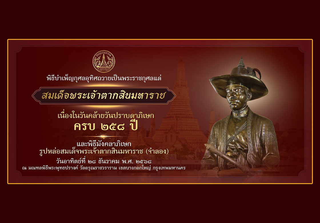พิธีบำเพ็ญกุศลอุทิศถวายเป็นพระราชกุศลแด่สมเด็จพระเจ้าตากสินมหาราช เนื่องในวันคล้าย วันปราบดาภิเษก ครบ ๒๕๘ ปี