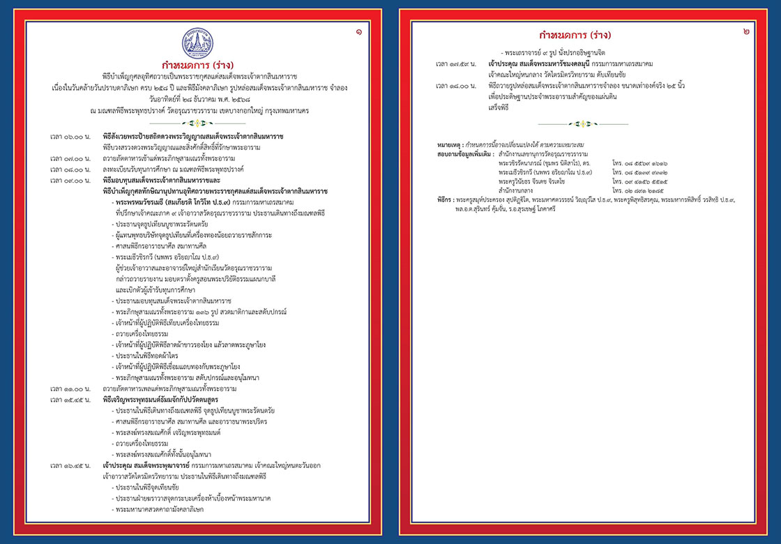 พิธีมหาพุทธา-มังคลาภิเษก พระพุทธนฤมิตร รูปหล่อสมเด็จพระเจ้าตากสินมหาราช สบทบทุนการบูรณะกำแพงโบราณ และเพื่อสวัสดิการพระภิกษุสามเณรภายในพระอาราม วัดอรุณราชวราราม