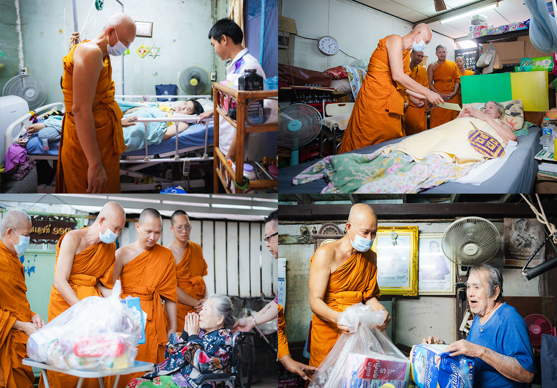 คณะสงฆ์กรุงเทพมหานคร คณะสงฆ์เขตบางกอกใหญ่ คณะสงฆ์วัดอรุณราชวราราม จัดกิจกรรมเยี่ยมพระภิกษุอาพาธ และมอบชุดถุงยังชีพเยี่ยมผู้ป่วยติดเตียงชุมชนปรกอรุณ