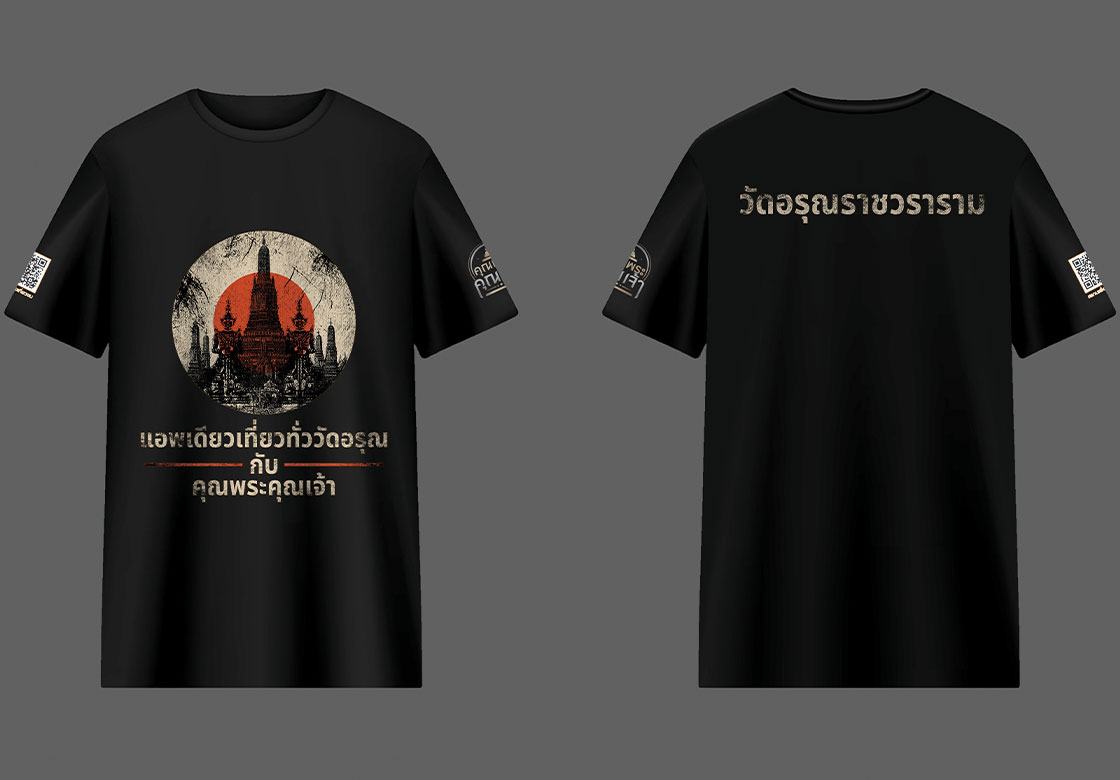 กราบขอบพระคุณ คณะสงฆ์วัดอรุณราชวราราม โดย พระเดชพระคุณหลวงพ่อ พระพรหมวัชรเมธี กรรมการมหาเถรสมาคม ที่ได้เมตตามอบหมายให้ พระเดชพระคุณ พระวชิรรัตนาภรณ์ ดร. (ชุมพร นิติสาโร) เลขานุการวัดอรุณราชวราราม ได้จัดทำเสื้อยืด แอพเดียวเที่ยวทั่ววัดอรุณกับคุณพระคุณเจ้า เพื่อมอบให้น้องๆ ทีมงานใส่ในวันเปิดกองถ่ายทำ ที่วัดอรุณราชวราราม ในเร็วๆนี้