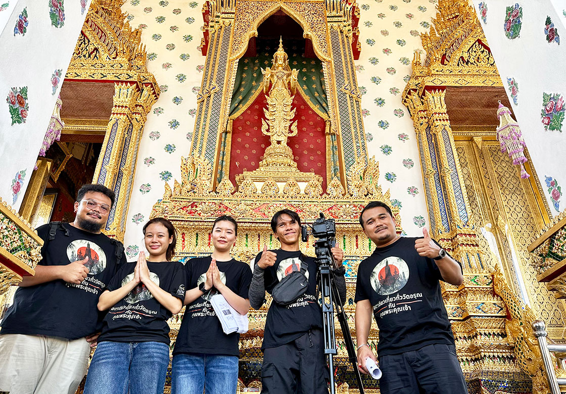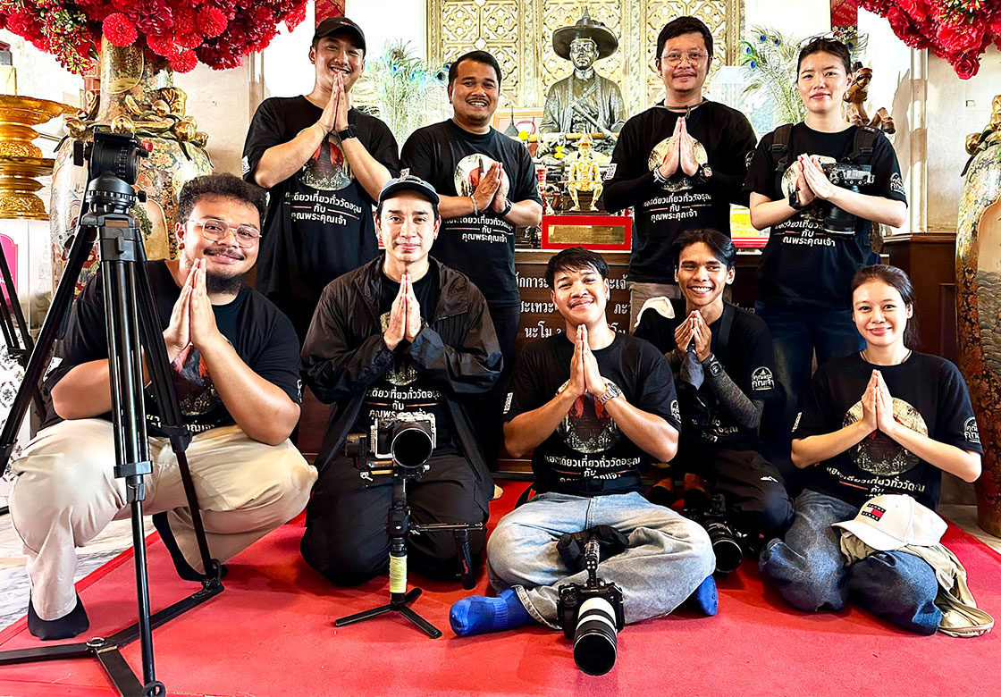 พิธีกรรายการเดอะเซียน ทางช่องคุณพระคุณเจ้า เดอะเซียน on tv ทางช่อง9 กด30 เจ้าของรายการเดอะรีวิววัด และ หลวงปู่สุขวัดโพธิ์ทรายทองstory ทางช่องคุณพระคุณเจ้า และน้องๆทีมงานของรายการคุณพระคุณเจ้าครบทีม มาร่วมแรงร่วมใจเก็บภาพอินเสิร์ทเบื้องหลังเพื่อนำเสนอในราบการ แอพเดียวเที่ยวทั่ววัดอรุณกับคุณพระคุณเจ้า