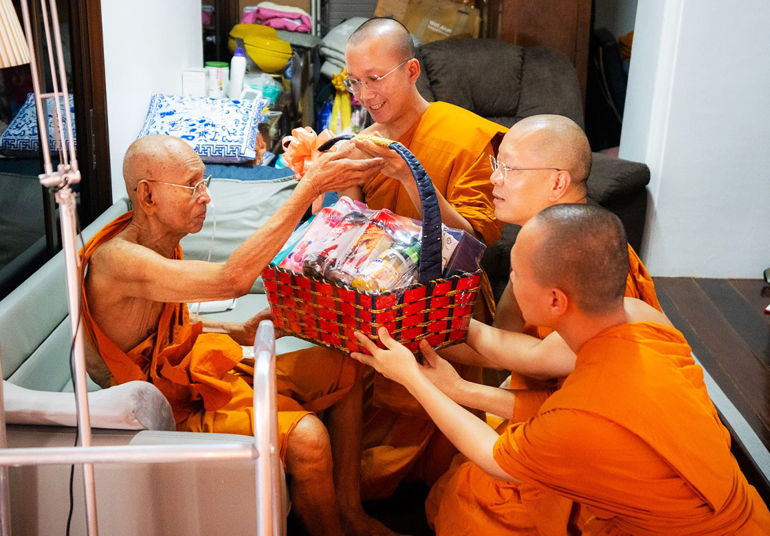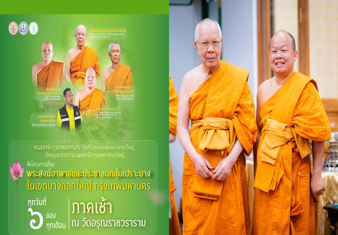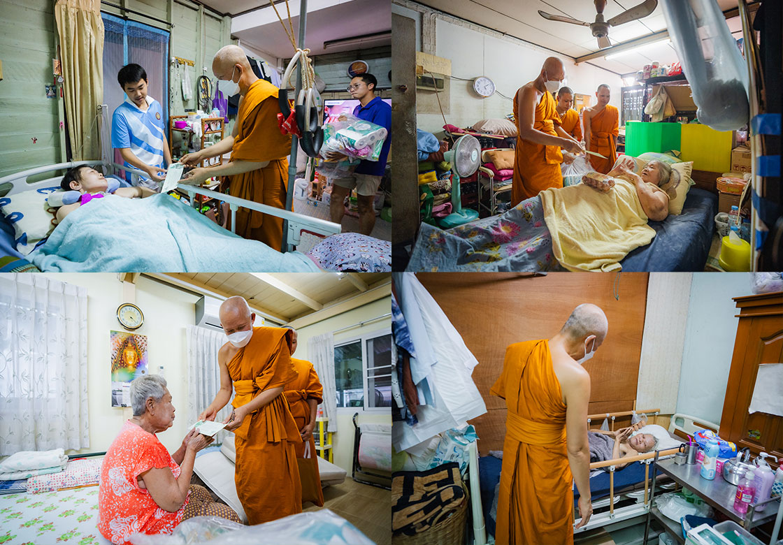 คณะสงฆ์กรุงเทพมหานคร คณะสงฆ์เขตบางกอกใหญ่ คณะสงฆ์วัดอรุณราชวราราม จัดกิจกรรมเยี่ยมพระภิกษุอาพาธ และมอบชุดถุงยังชีพเยี่ยมผู้ป่วยติดเตียงชุมชนปรกอรุณ