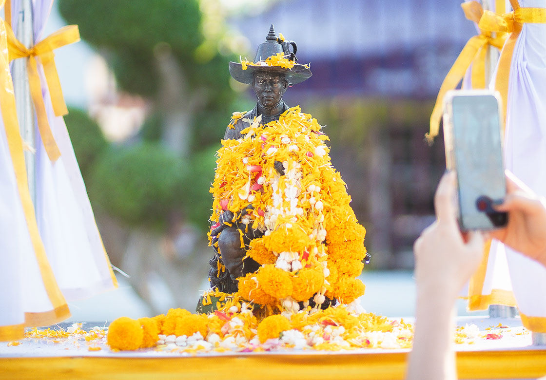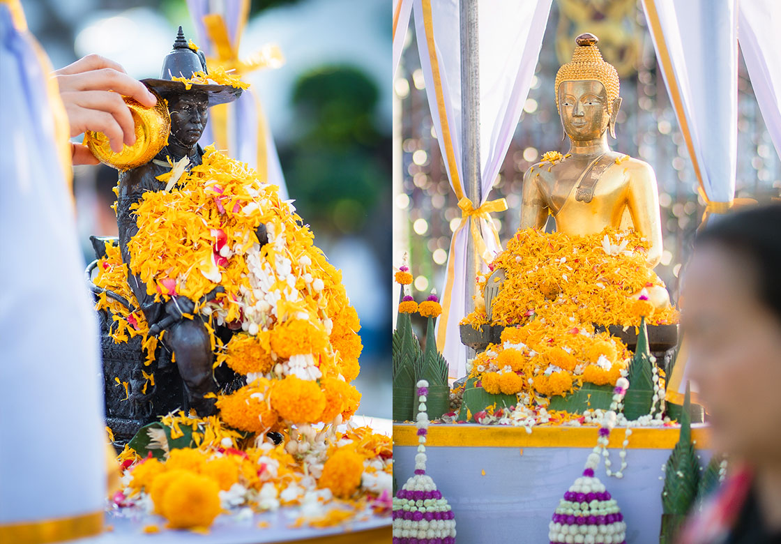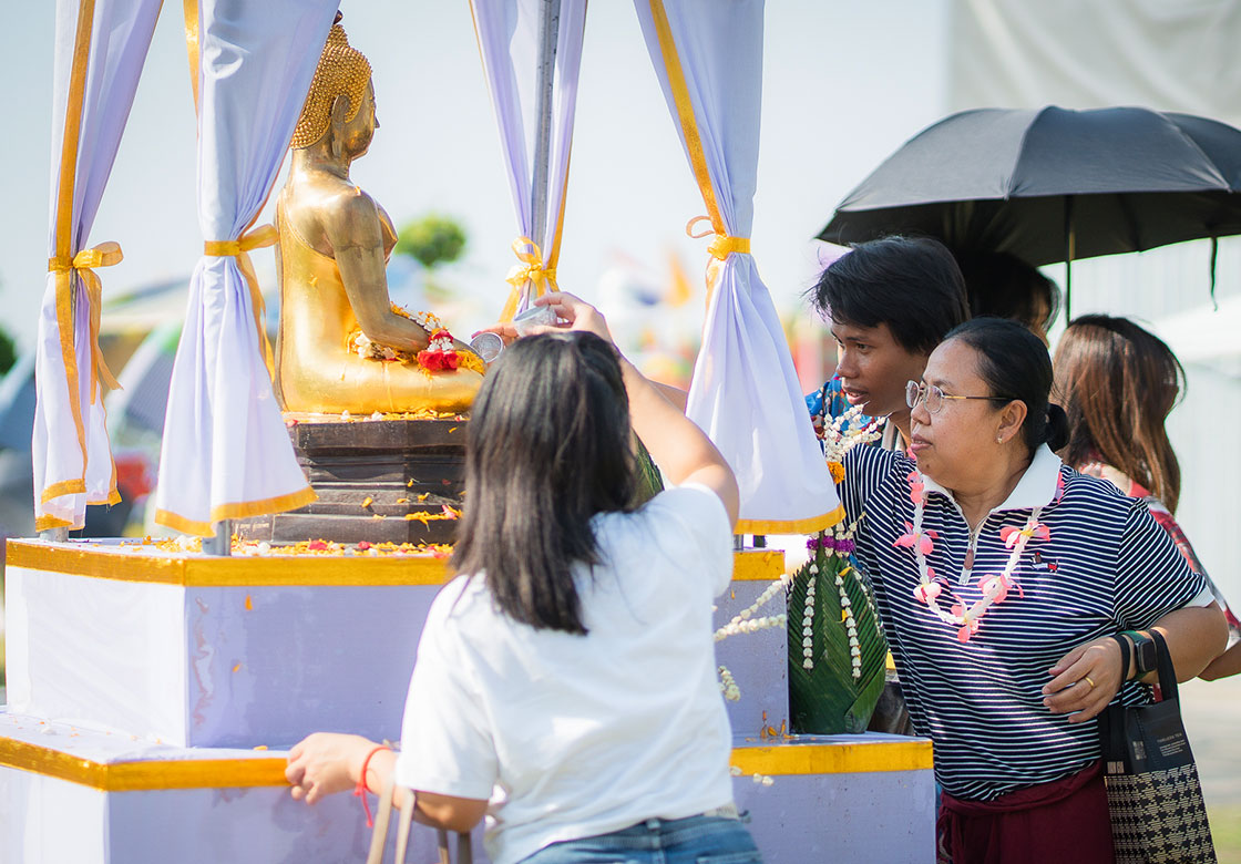 ภาพบรรยากาศพุทธศาสนิกชนร่วมสืบสานประเพณีไทย สรงน้ำพระพุทธรูปศักดิ์สิทธิ์ หลวงพ่อแจ้ง และบูรพมหากษัตริย์ไทย วันสงกรานต์ประจำปี ๒๕๖๙